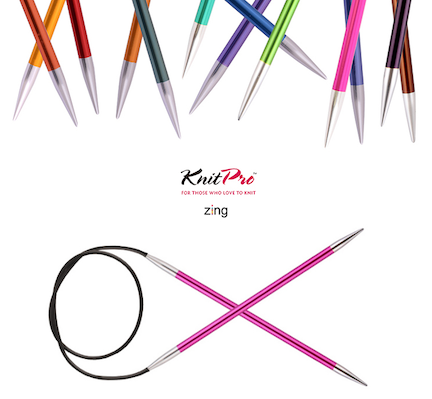 Zing fixed circular needles come in variety of lengths and in color specific sizes.